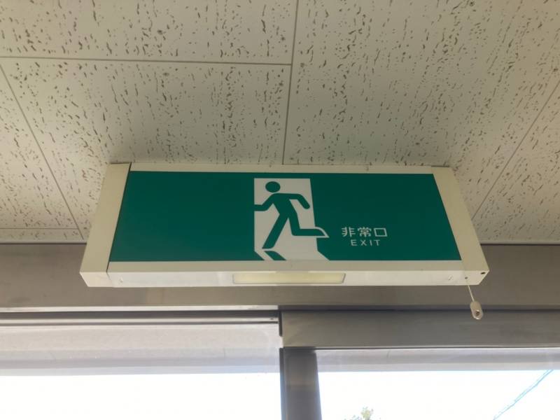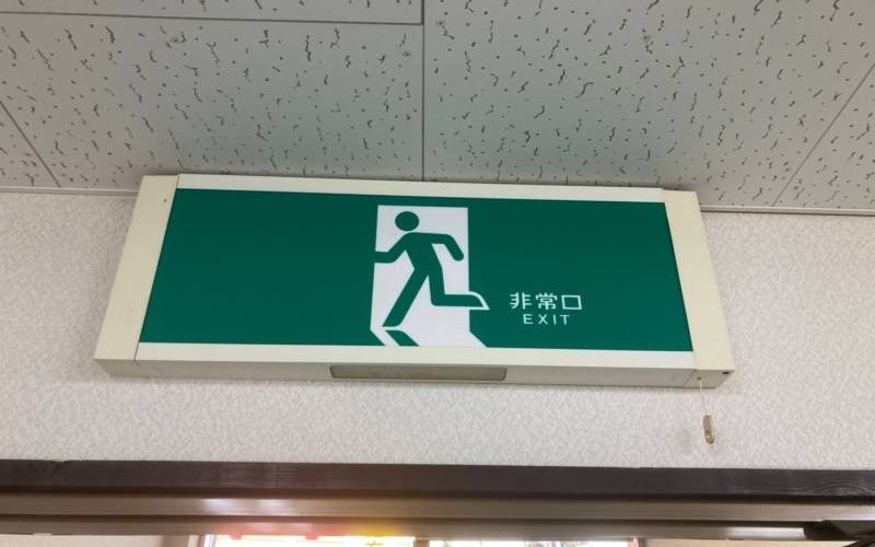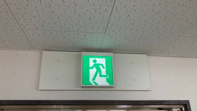 避難口誘導灯には基本的に天井に設置してあるものと、壁に設置してあるものがありますが、
